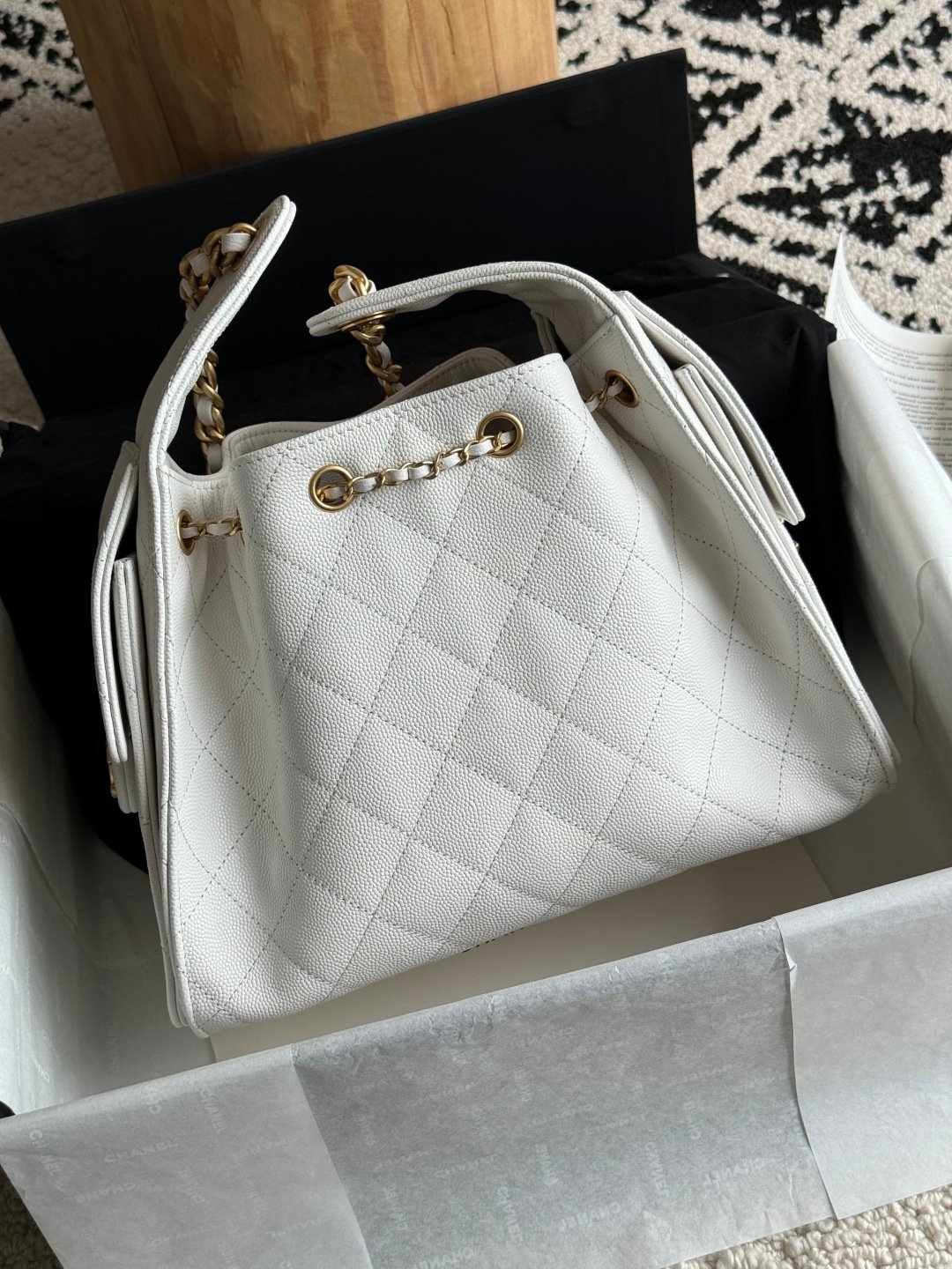 Featuring a meticulously crafted quilted pattern, it adds depth and a refined sense of style. The overall bucket-style silhouette is clean and elegant, with smooth lines that balance sophistication and effortless chic.