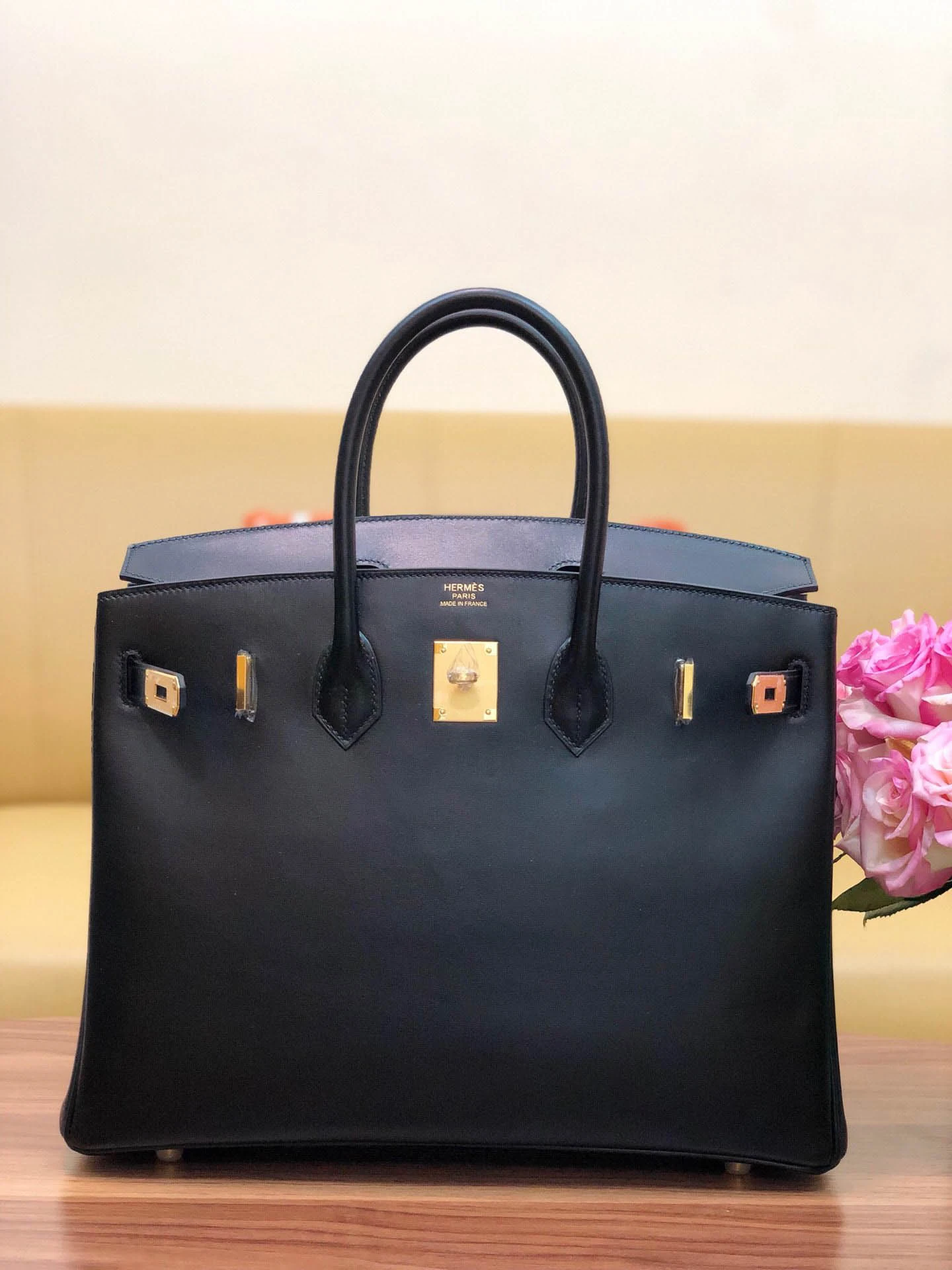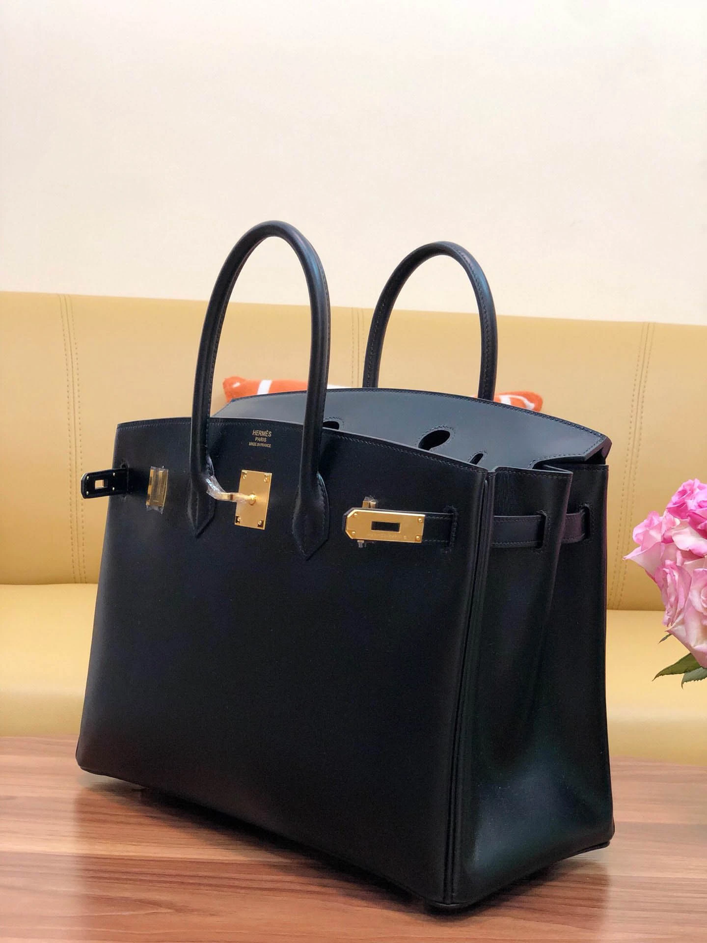 Birkin box black with gold buckle