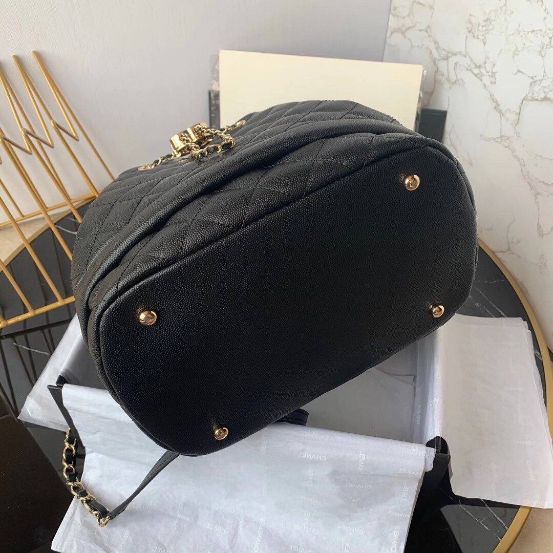 Chanel Women’s Bag — New drawstring bucket bag with chain crossbody strap.
