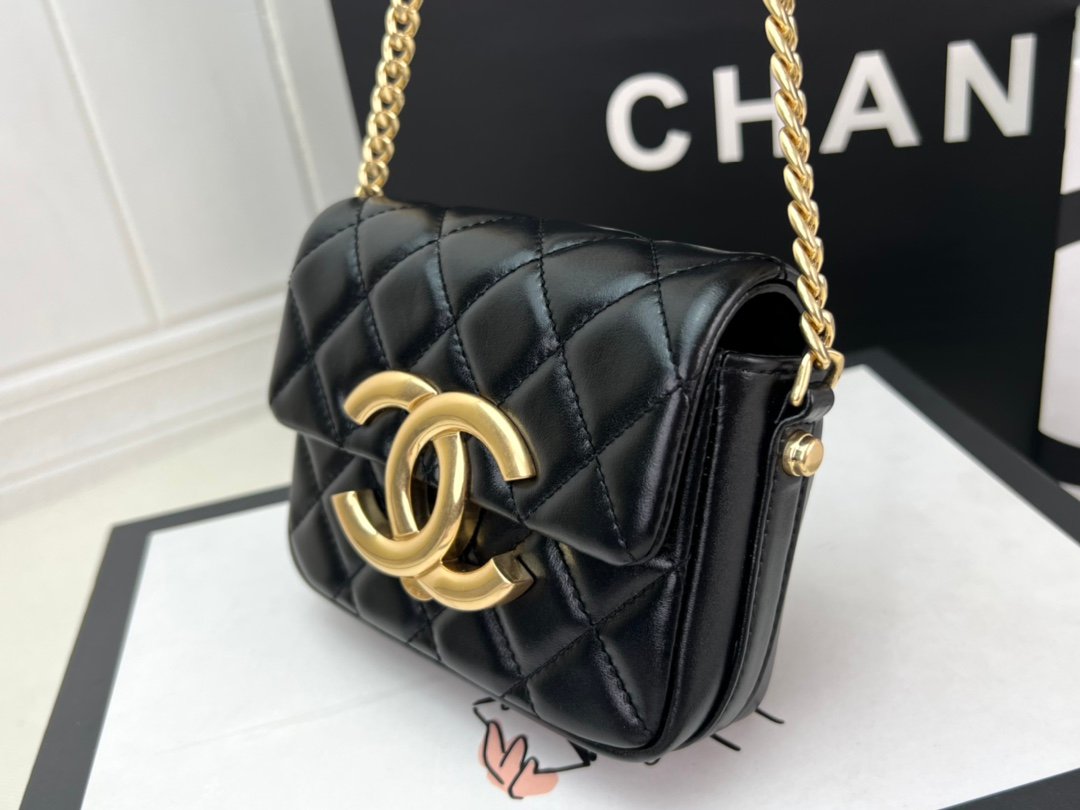 CHANEL 23P 💘 Large AS3125 hidden style with a vintage black-and-gold oversized logo. A super square, boxy “chunky” shape with the double-C. The big logo gives a vintage oiled/waxed leather vibe, and the hardware has an antique/distressed finish. The flap uses a magnetic closure and it can hold lots of must-have essentials. Great value for money—first release online. I have zero resistance to this kind of big metal logo badge… so vintage!