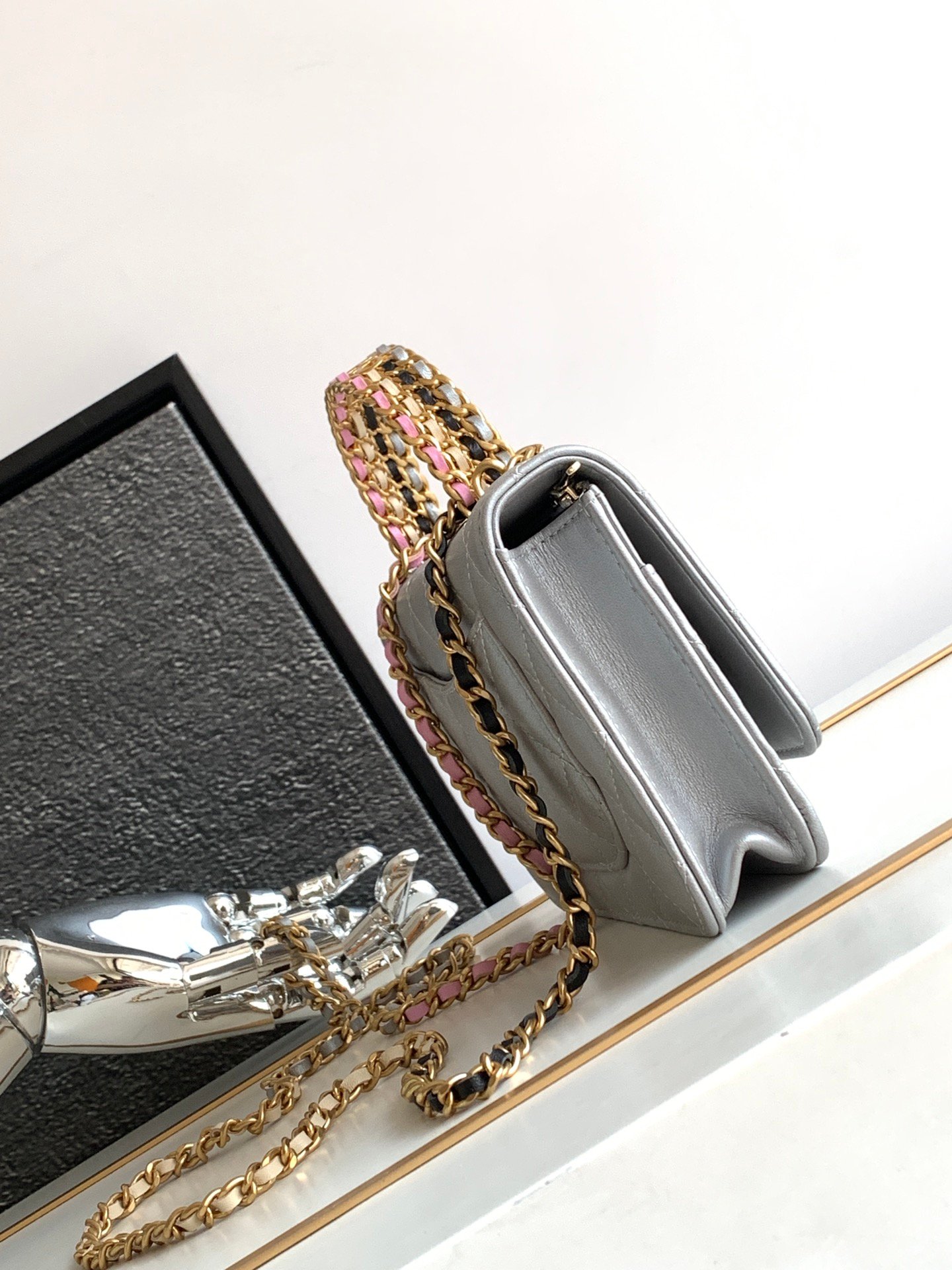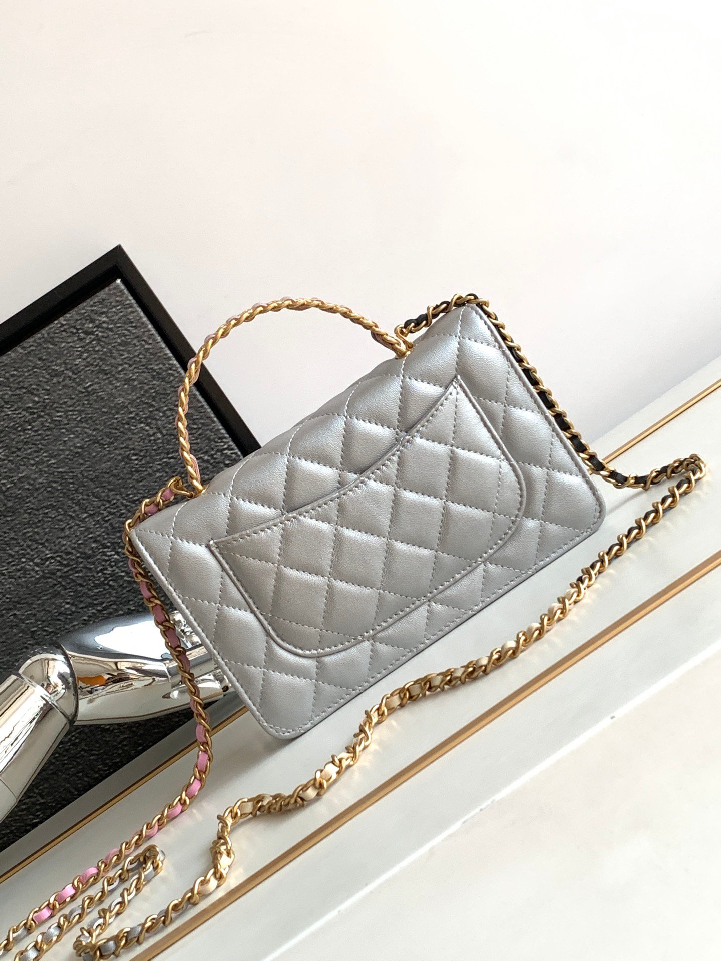 😍 Silver WOC AS2431 is in stock now! Chanel 23P silver top-handle WOC.