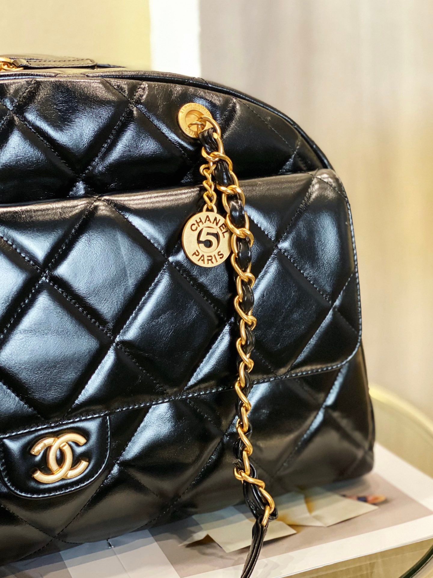 Chanel 23C new style featuring a No. 5 coin pendant.