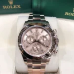 With its tachymetric scale, its three counters and its pushers, the Cosmograph Daytona was designed to be the ultimate timing tool for endurance racing drivers. The bezel features a tachymetric scale to read average speed over a given distance based on elapsed time. This scale offers optimal legibility, making the Cosmograph Daytona the ideal instrument for measuring speeds up to 400 units per hour, expressed in kilometres or miles.