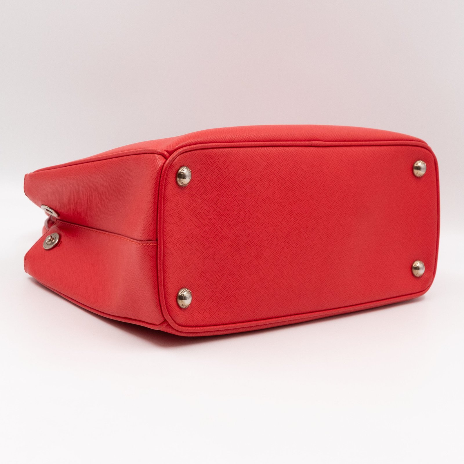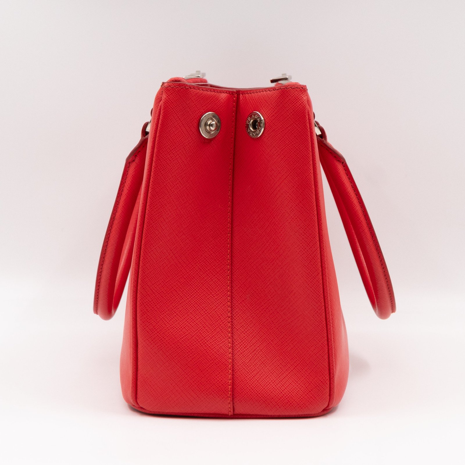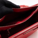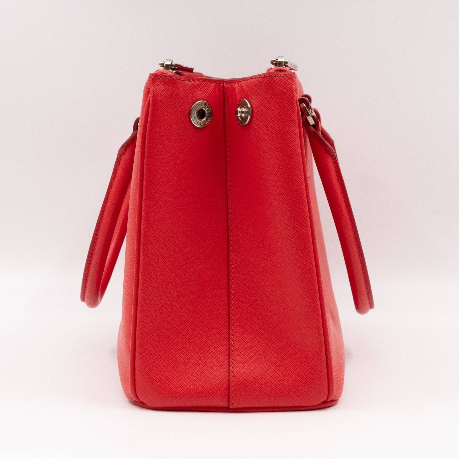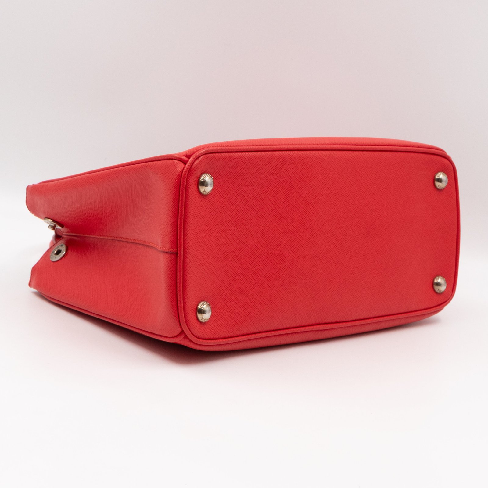 A Prada Galleria Medium Double Zip bag in durable Saffiano leather. Very convenient double zipper bag in nice lacca red color, combined with silver-tone hardware. This medium edition size fits your phone, wallet, documents and so on, even a smaller laptop or iPad fits nicely. Great choice for daily use. Each side has zipper pockets, the middle compartment expands to a spacious size. Current retail price €3700.