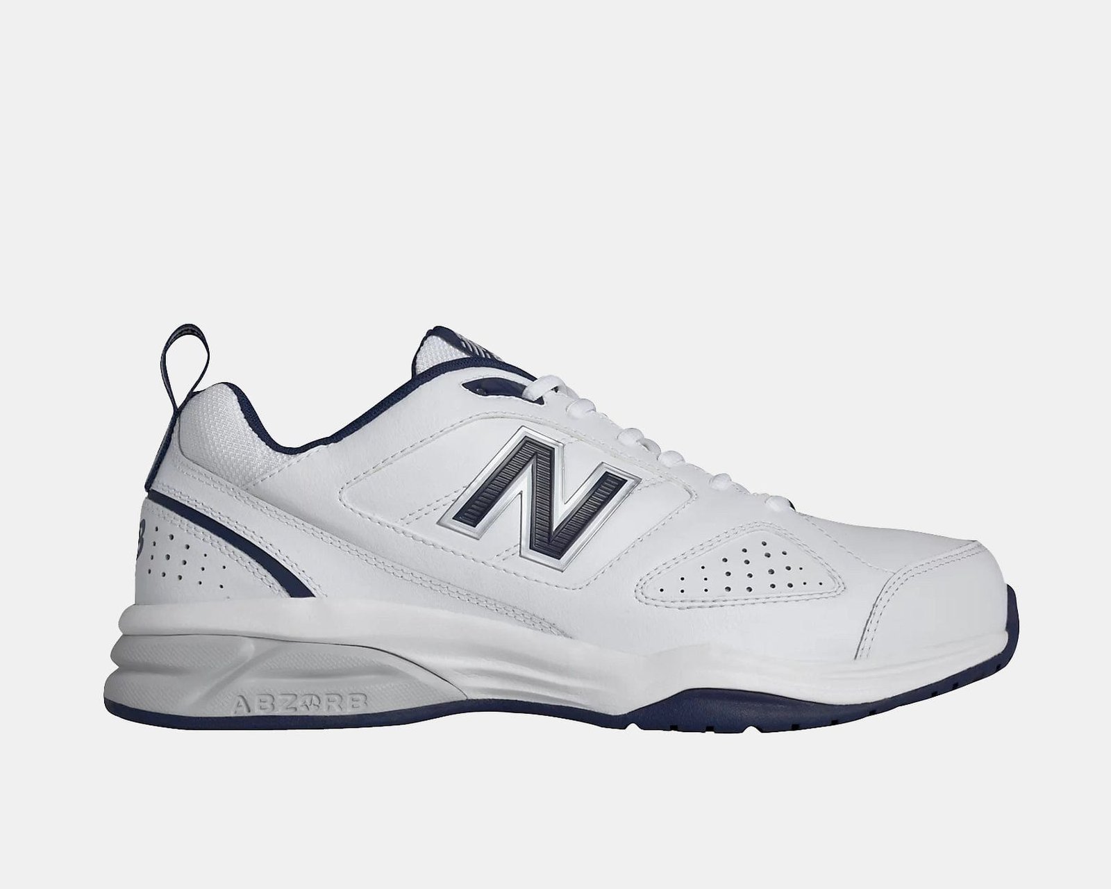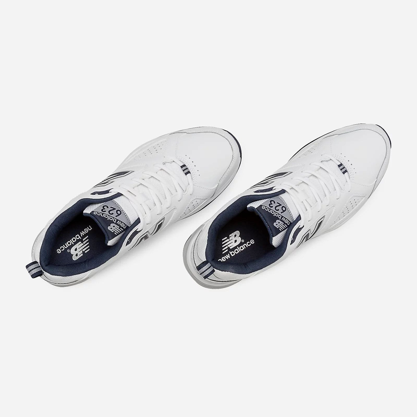 ABZORB® cushioning system in heel and forefoot for superior shock-absorption. This New Balance 623’s (black or white) upper consists of premium leather for a durable and athletic feel. IMEVA (injection-molded EVA foam) midsole for a one-of-a-kind flexible feel. A stability shank specifically designed for low-arching feet is implanted for support. New Balance 623 shoe includes a non-marking rubber outsole, and the Seamless Phantom lightweight liner provides a luxurious fit.