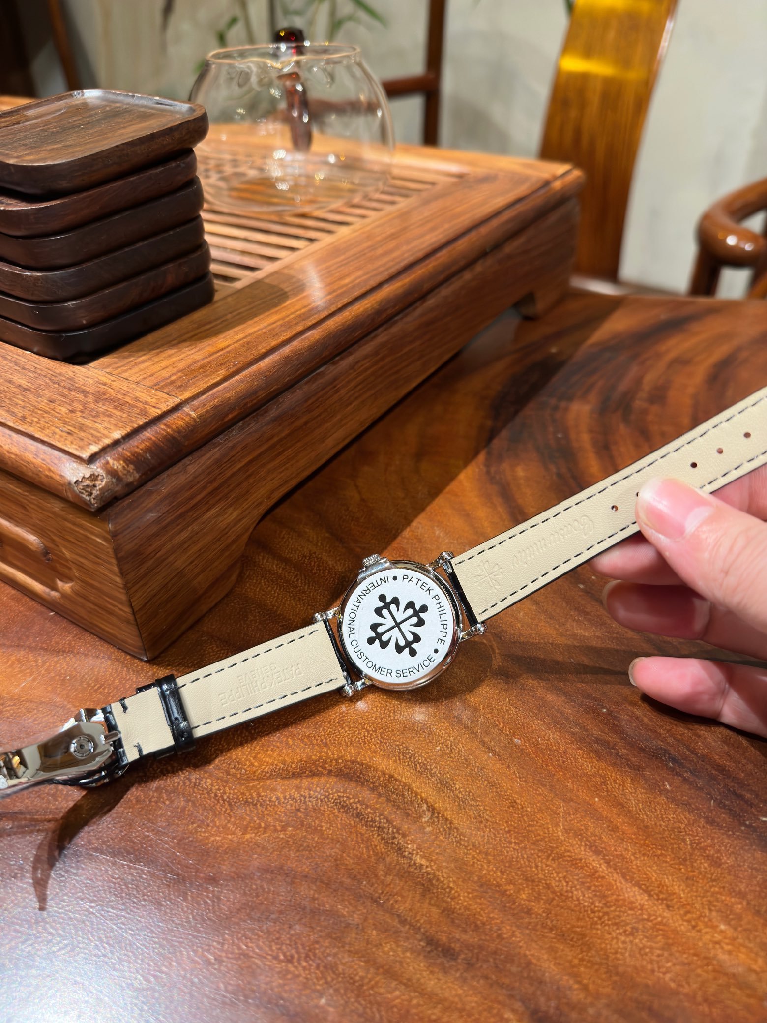 Classic Italian calfskin leather strap with clear texture and superior quality. Paired with the market’s top-tier Patek Philippe lantern-style buckle, featuring a custom snap system for quick and easy adjustment. Fully compatible with the original without any issue.