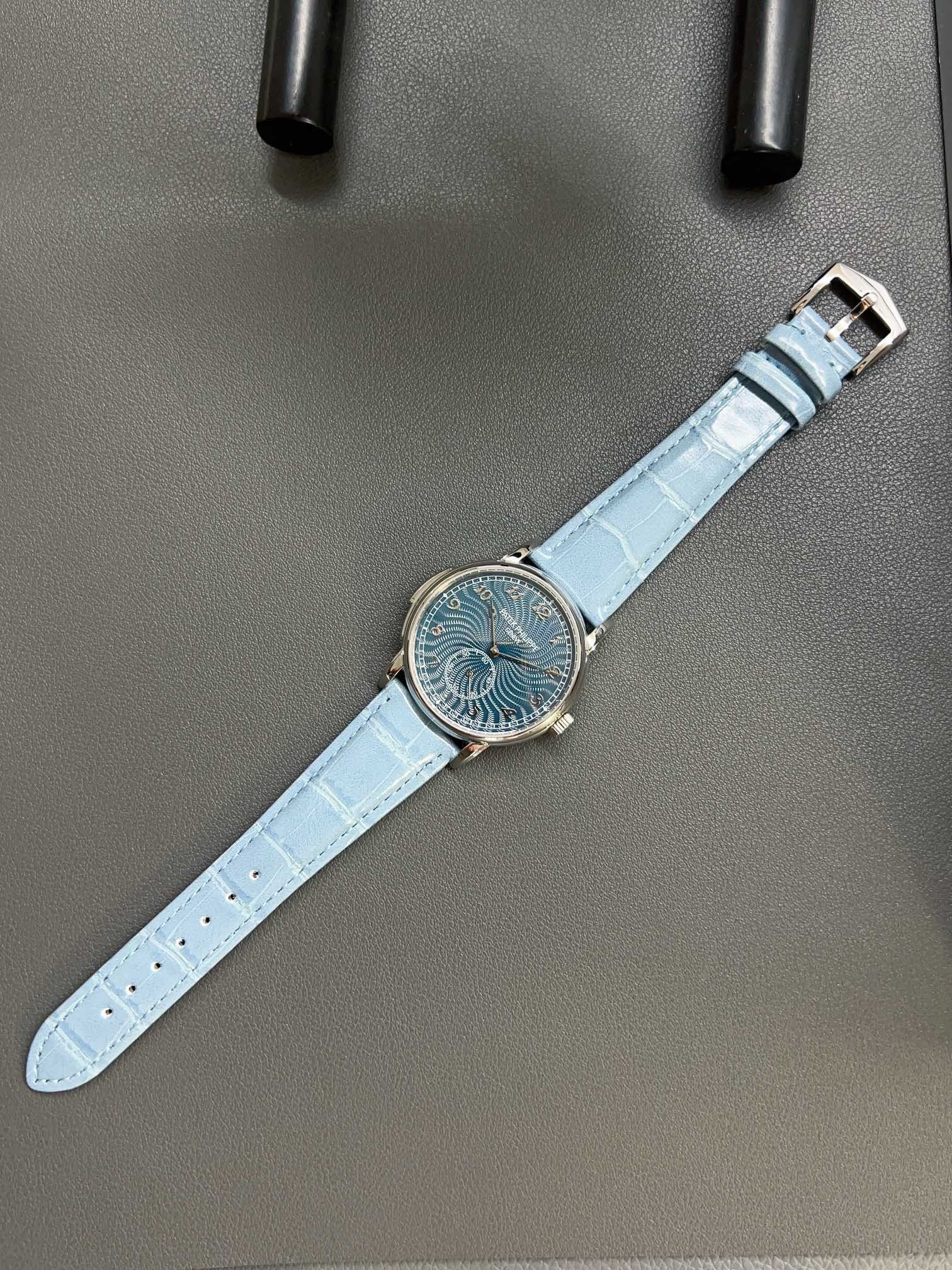 Classic Italian calfskin leather strap with clear texture and premium feel. The pin buckle is polished neatly and shines brightly, fully compatible with the original without any issue.