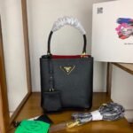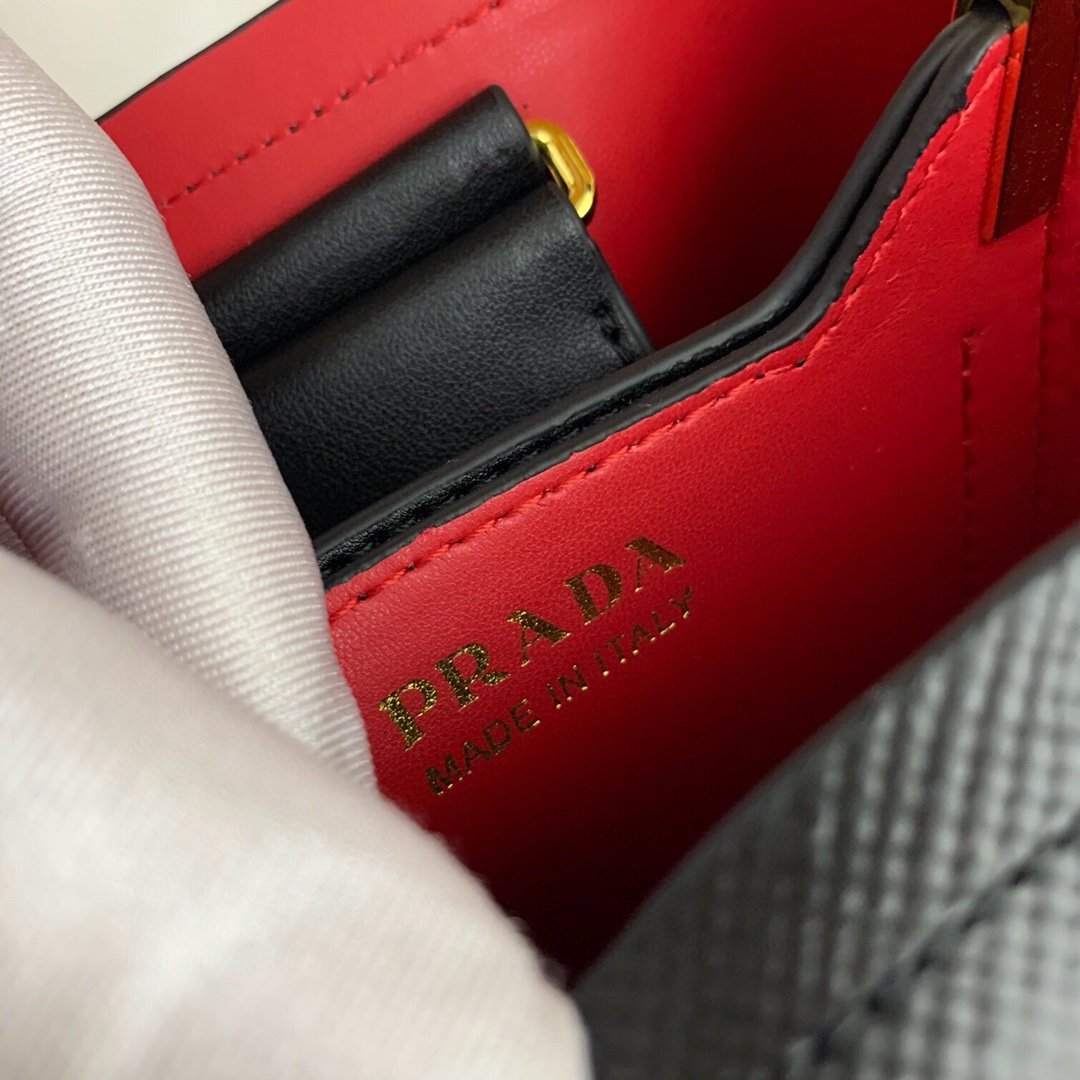 💰 Prada Women’s Handbag 🌹 Latest Hit Style 1BA217 (Mini Size) Bucket Bag Now Shipping 👏💋. Made of Saffiano leather material. Features leather handles and a detachable, adjustable leather shoulder strap. Includes a detachable leather name tag with a metal logo. Central compartment closes with a leather-covered magnetic clasp. Saffiano leather triangle logo. Contrasting soft sheepskin (nappa) lining 💥💥💥. Dimensions: 18 × 17 × 10.5 cm