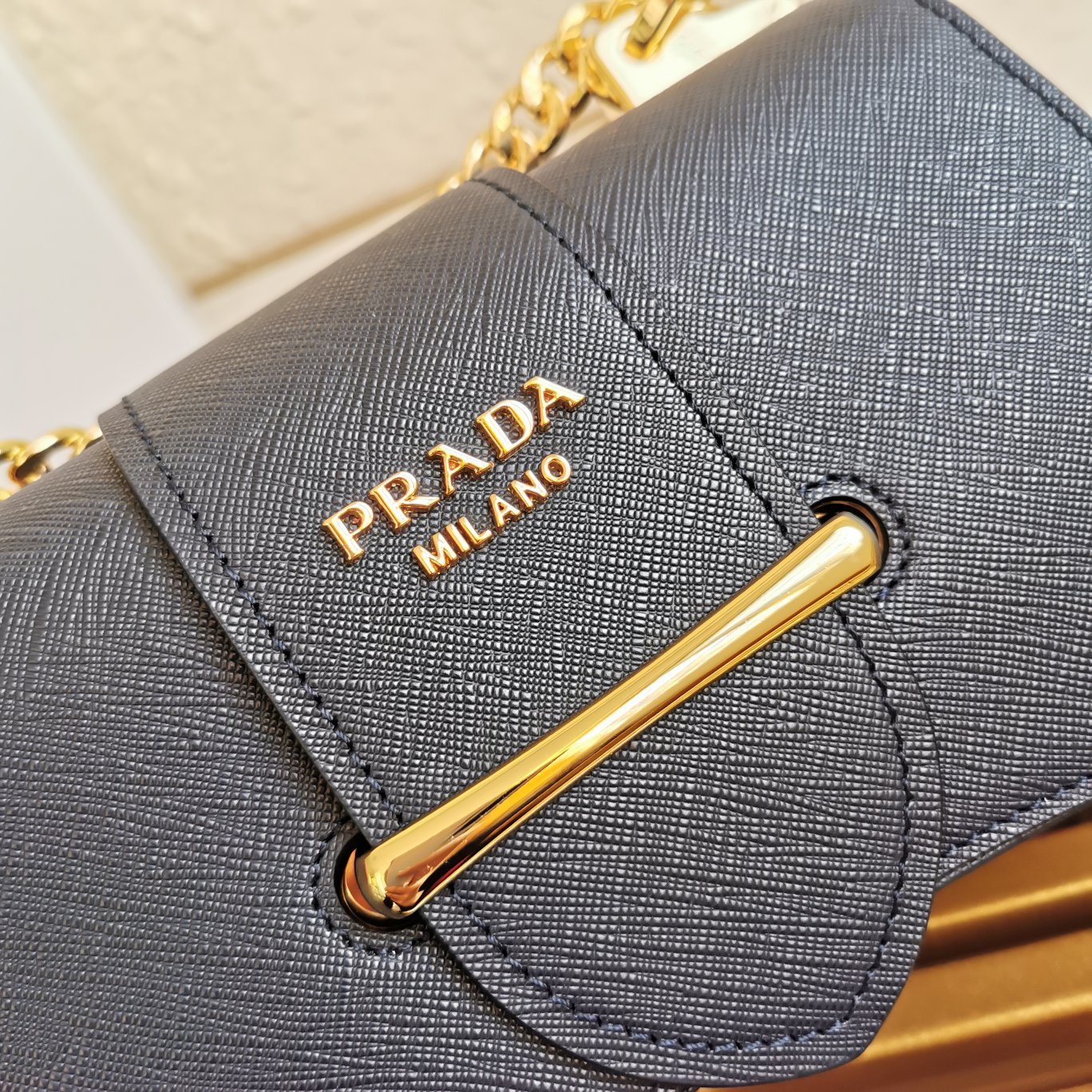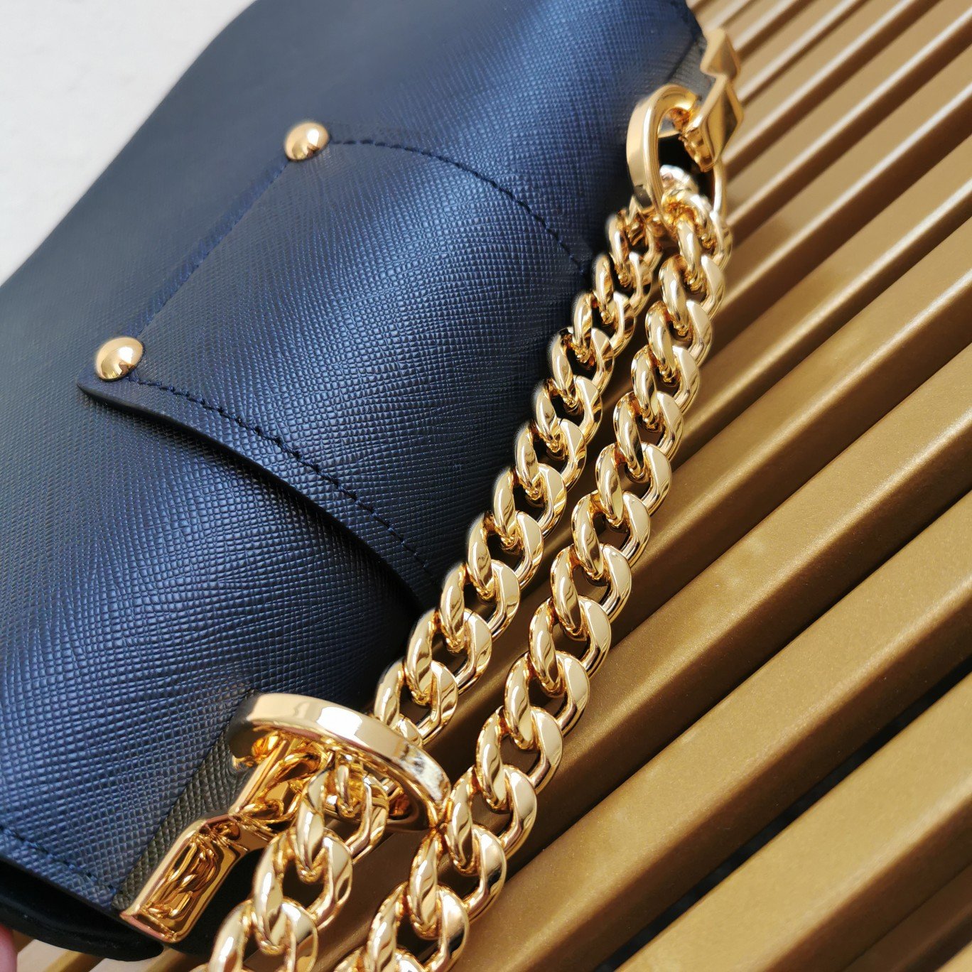 【Prada Women’s Handbag – Top Grade Original Factory Quality】P-Family 🌹 Boutique New Arrival 🔥 Original Factory Quality. Prada Spring/Summer 2020 New Style 1BD219 Prada Sidonie Handbag. Made with Italian imported Saffiano leather + calfskin lining. Features a metal chain with a leather shoulder pad. Front flap with strap and metal lettering logo. The chain shoulder strap is adjustable for shoulder or crossbody wear. The style is unique and novel. Quality comparable to the authentic product, bringing you a different feeling. A must-have for ladies 😘 Size: 21.5*6.5*12.5cm!