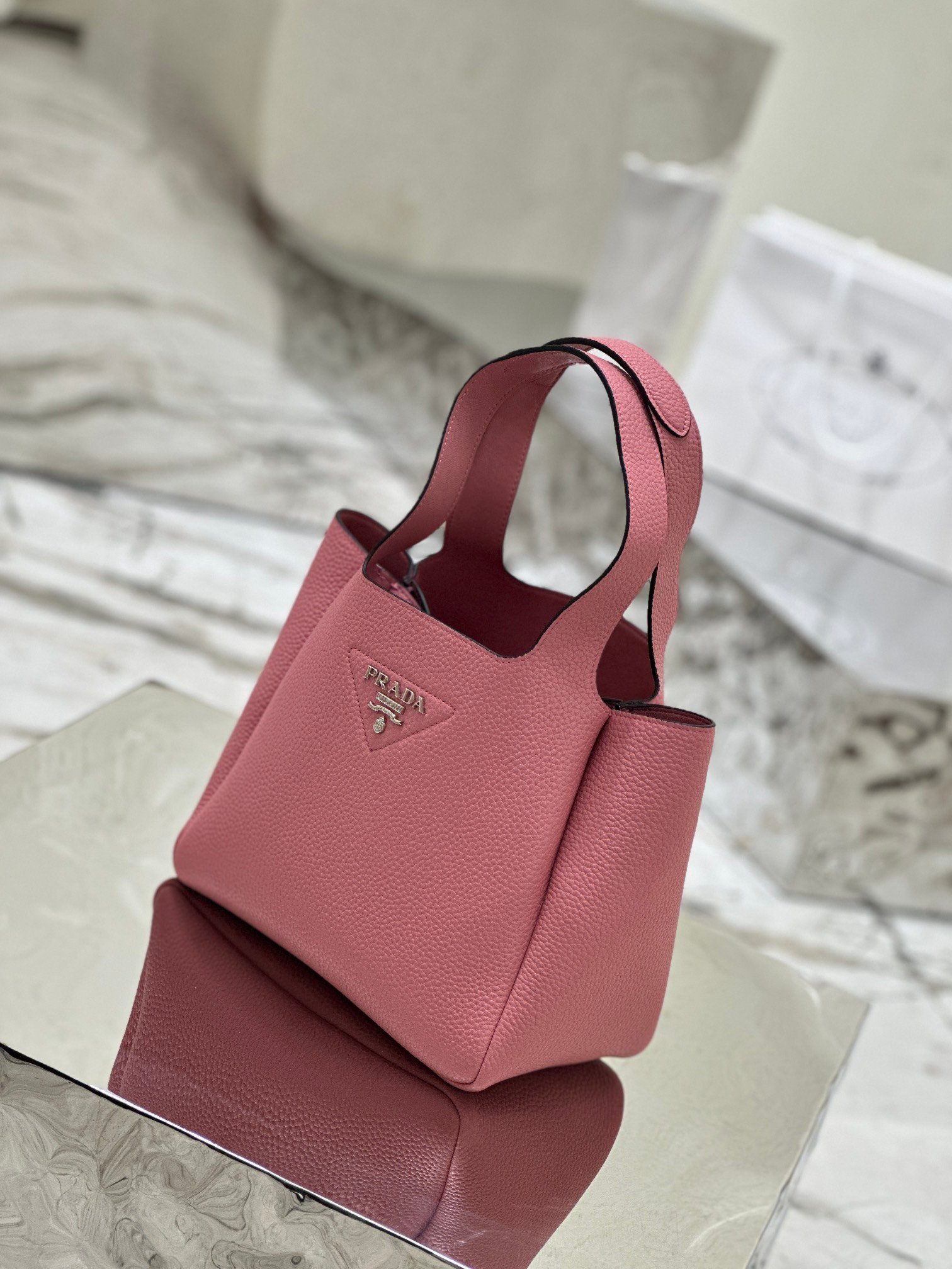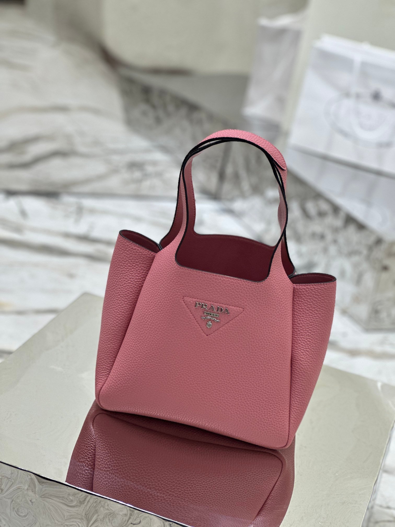 Soft and delicate calfskin basket tote/underarm bag. Featuring full leather inside and out, equipped with a single handle and adorned with a silver metal logo. The overall body of the bag is incredibly soft and lightweight, exuding an outstandingly elegant style. Two side pockets not only satisfy the need for refined organization but also add a touch of graceful charm. Can be carried by hand or used as an underarm bag.