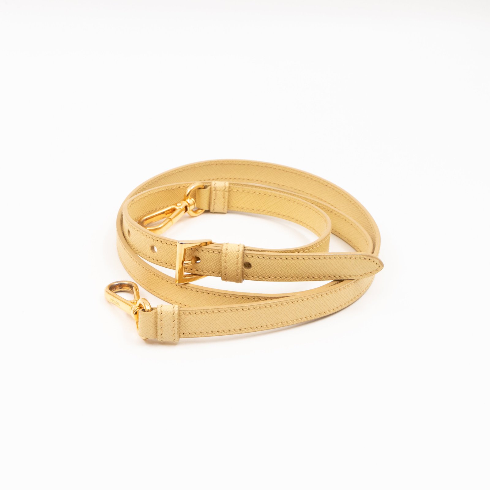 A cute large sized edition Prada Promenade crossbody bag. Made with saffiano leather in yellow, combined with gold-tone hardware. This Promenade fits all your daily items. Open to two compartments and two slim pocket.