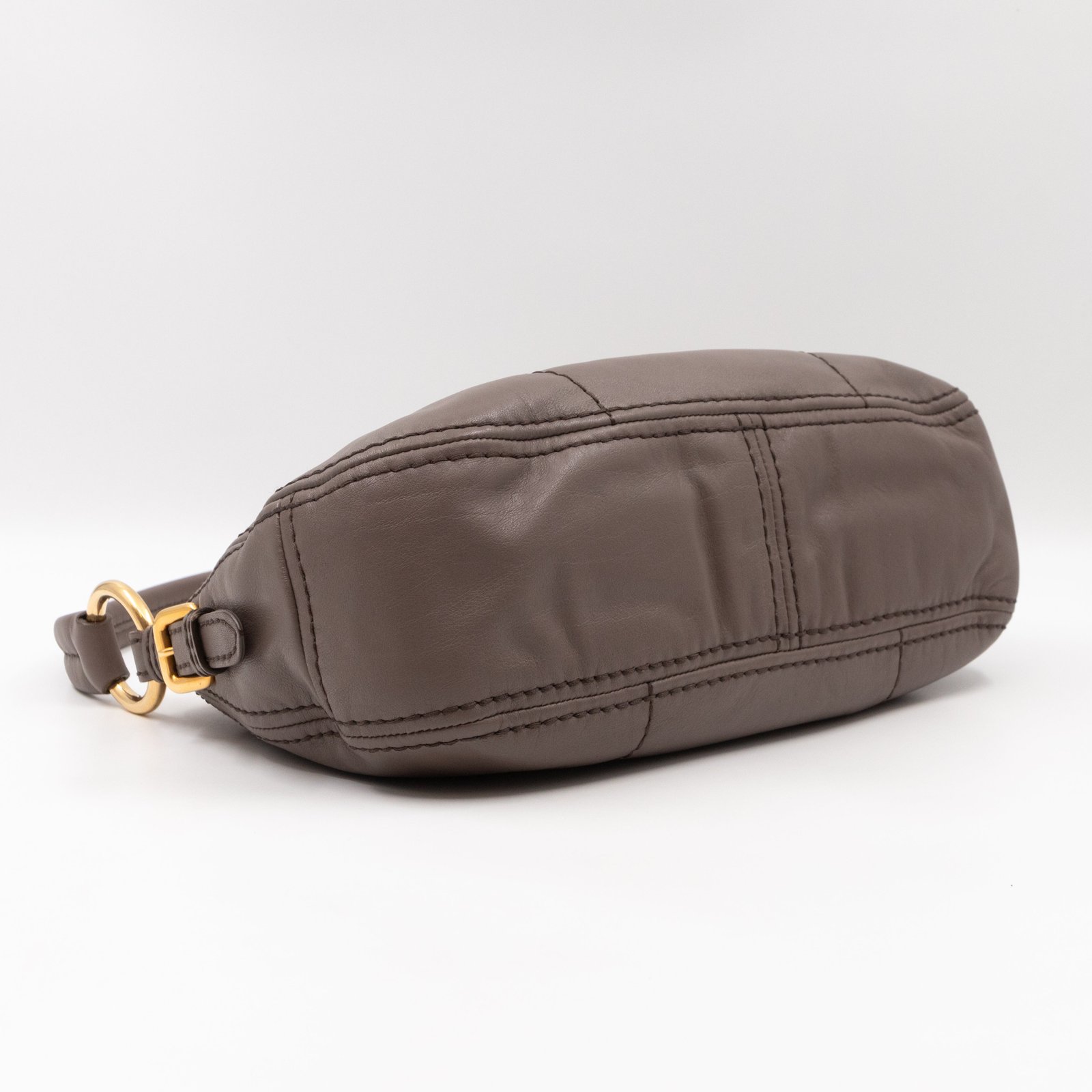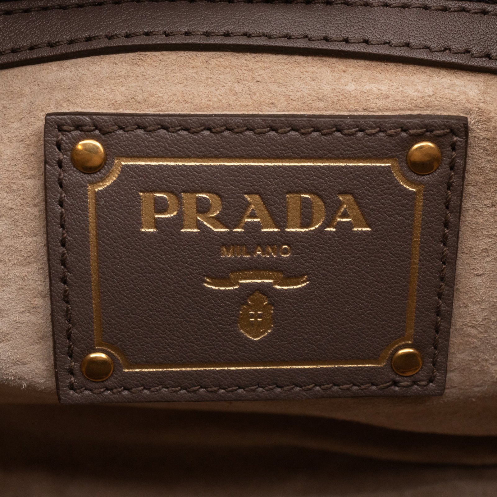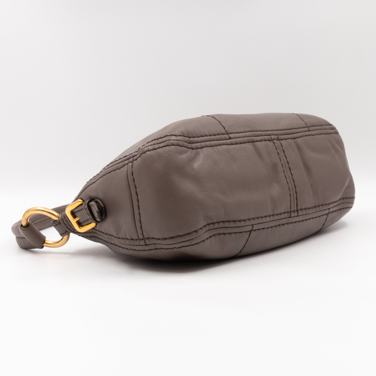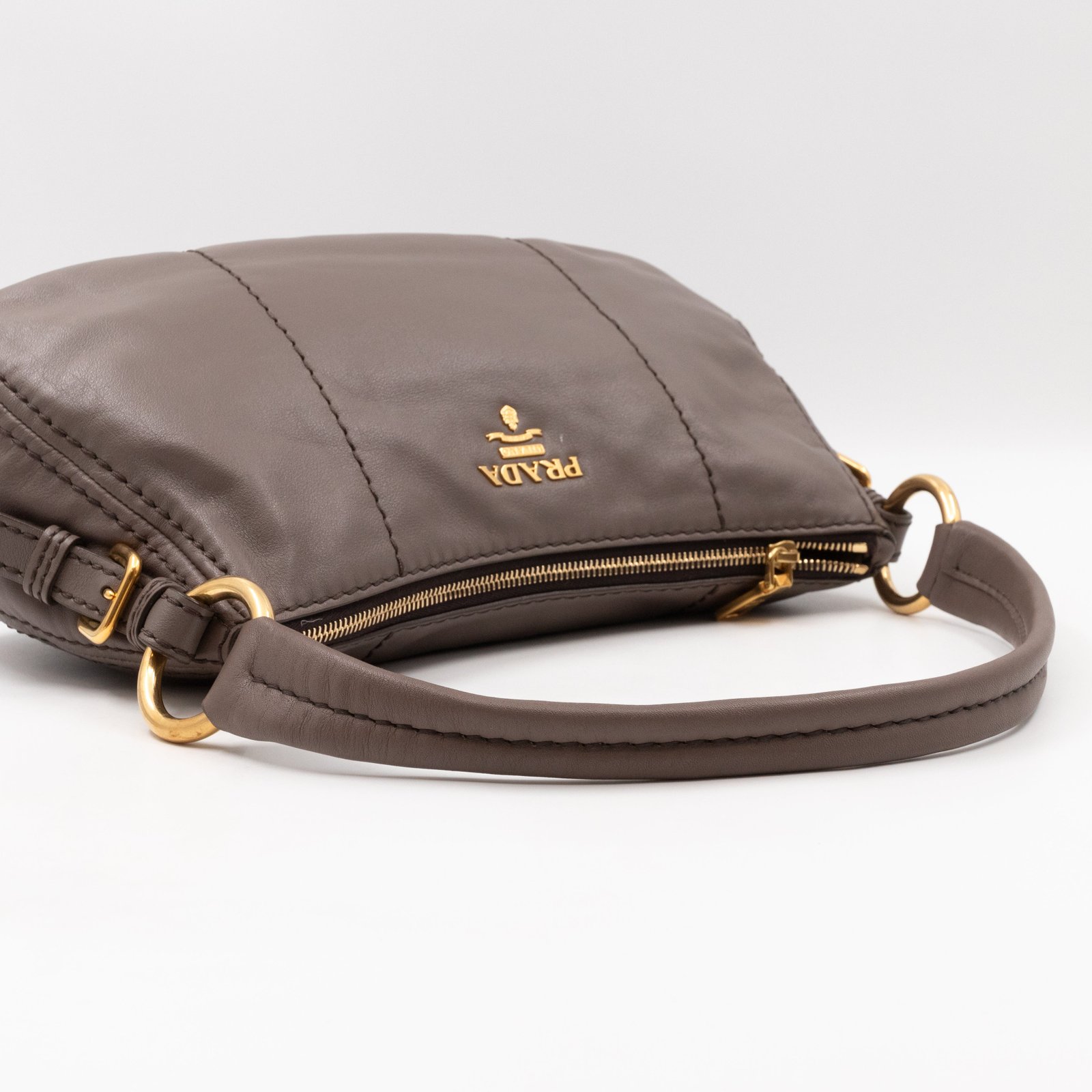 This is a elegant Prada shoulder bag. Very convenient shoulder bag in a grey soft calfskin leather, combined with gold-tone hardware. Top zipper open to a slim pocket and a zipper pocket. Great choice for daily use.