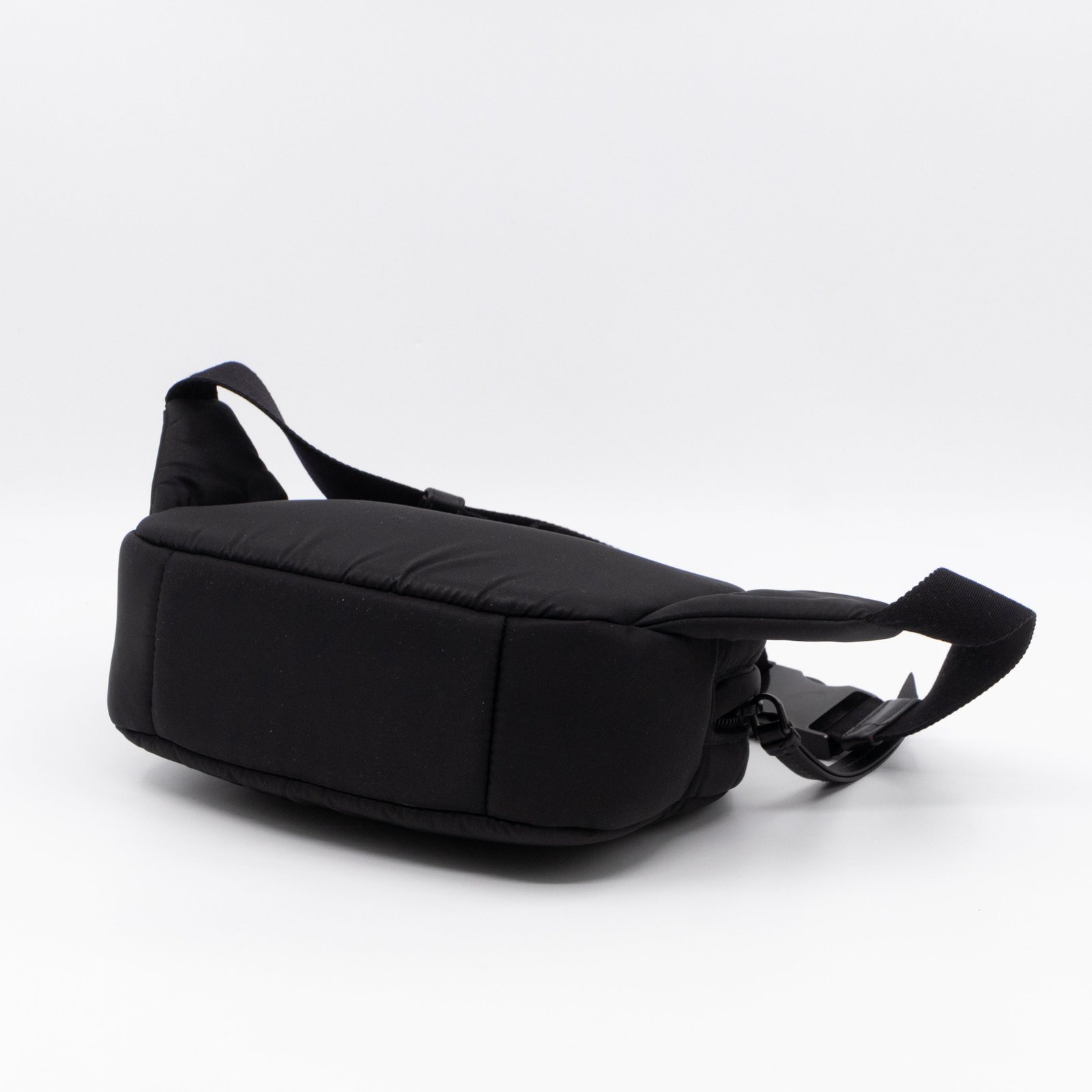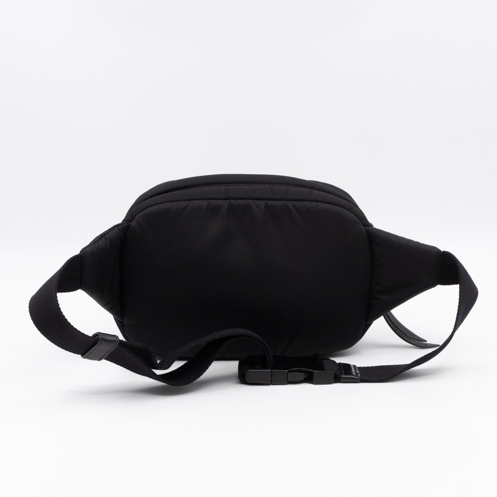 This is the Tessuto Nylon belt bag from Prada. It is made in black tessuto nylon and silver-tone hardware. Spacious design with an adjustable nylon strap. The bag features a long zipper pocket. The top zipper opens to a black fabric interior with a slim pocket. Belt length max. 100 cm. Wear it on the waist for a classic belt bag look.